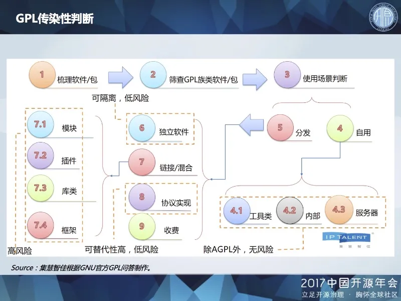 需要注意的是,某个GPL软件的使用场景如果发生变化,之前对其传染性风险的判断也有可能变化,需要根据新的使用场景重新评估。