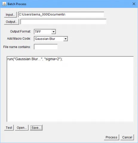 当你有一个分析程序可以工作于给定图片类型,你通常需要将相同的步骤应用到一系列图片当中。这可能数以千计,你当然不会想对每张图片手动重复操作。这时候,你可以集中必要步骤到宏,这样它们可以被应用多次。点击插件->“Macros”->“Record”,弹出一个新的窗口记录你随后的所有命令。所有步骤完成,你可以将之保存为一个宏文件,并且通过点击“Plugins”->“Macros”->“Run”来在其它图片上重复运行。