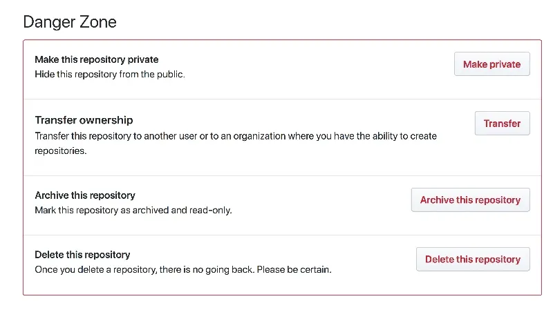 如果你改变了主意想要解除归档你的仓库,在相同的地方点击“ 解除归档该仓库 ”。请注意归档仓库的大多数设置是隐藏的,你需要解除归档才能改变它们。
