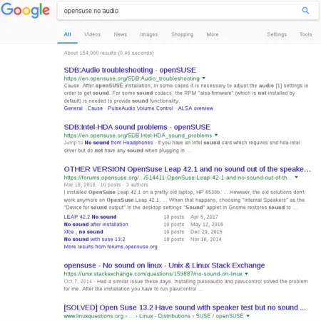 解决方法一般在搜索结果的前几个连接中就会有了。当然,你不能只是无脑得运行从互联网上找到的那些命令:请一定先搞清楚你要做的事情是什么,它的效果会是什么。据说,搜索系统日志中的特定条目要比直接描述该故障通用关键字要有用的多。因为程序出错有很多原因,而且同样的故障表现也可能由多种问题引发的。