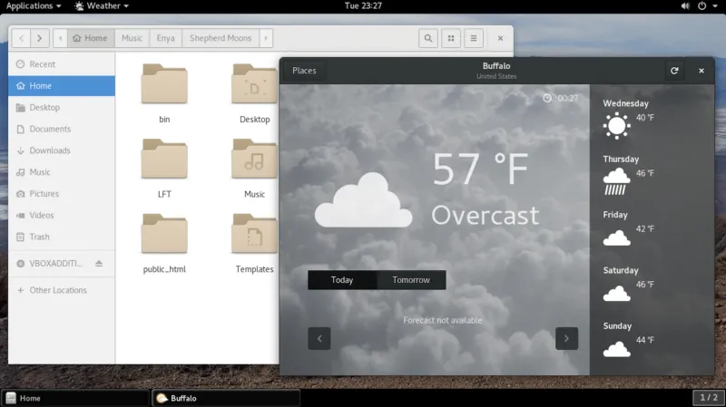 Gnome 桌面(图 3)是最常用的图形环境之一。许多发行版将 Gnome 作为默认的图形环境。Gnome 并不打算模仿 Windows 或是 MacOS,而是以其自身的优雅和易用为目标。