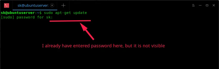 当你在 Web 浏览器或任何 GUI 登录中输入密码时,密码会被标记成星号 ******** 或圆点符号 ••••••••••••• 。这是内置的安全机制,以防止你附近的用户看到你的密码。但是当你在终端输入密码来执行任何 sudo 或 su 的管理任务时,你不会在输入密码的时候看见星号或者圆点符号。它不会有任何输入密码的视觉指示,也不会有任何光标移动,什么也没有。你不知道你是否输入了所有的字符。你只会看到一个空白的屏幕!