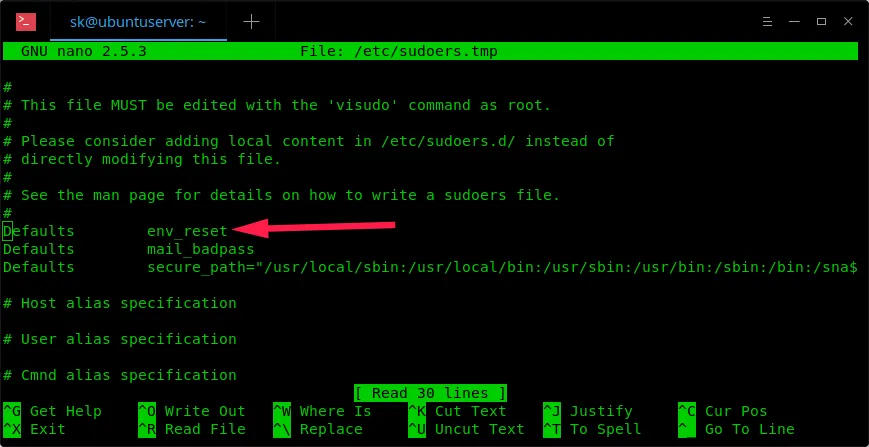接下来,使用下面的命令编辑 /etc/sudoers: