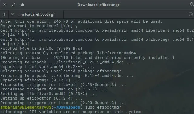 如果你的系统支持 UEFI,它会输出不同的变量。如果没有,你将看到一条消息指出 EFI 变量不支持。