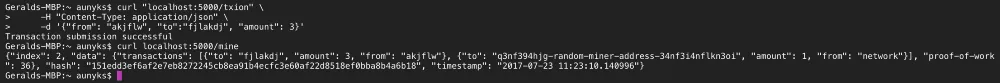 curl localhost:5000/mine