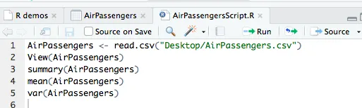 在 RStudio 的脚本编辑器中,我可以编写我发出的所有命令的脚本,然后保存该脚本以便在我的数据更改后能再次运行,或者想重新访问它。