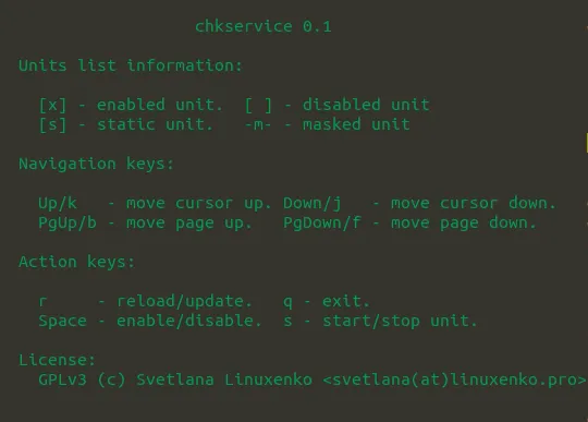 chkservice 是一个基于 ncurses 的在终端中管理 systemd 单元的工具。它提供了一个非常全面的 systemd 服务的视图,使得它们非常容易修改。