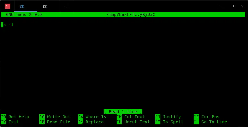 现在再输入 fc 就可以使用 nano 编辑器来编辑上一个命令了。