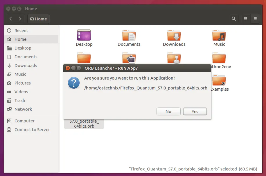 下载完后,进入下载位置并双击 ORB 程序来启动它。点击 Yes 确认。