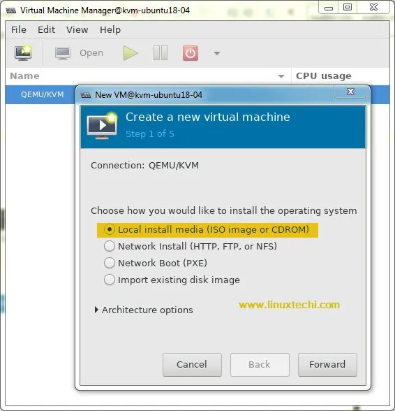 linuxtechi@kvm-ubuntu18-04:~$ sudo virt-manager