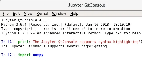 Navigator 启动后,可以很容易地浏览 Anaconda 发行版包含的应用。按照文档所述,64 位 Python 3.6 版本的 Anaconda 支持 499 个软件包。我浏览的第一个应用是 Jupyter QtConsole,这个简单易用的 GUI 支持内联数据 (inline figures) 和语法高亮。