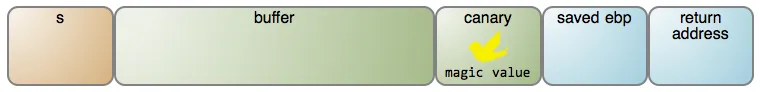 幸亏,现代操作系统有了 防止缓冲区溢出 的一系列保护措施,包括不可执行的栈和 栈内金丝雀 。这个 “ 金丝雀 ” 名字来自 煤矿中的金丝雀 中的表述(LCTT 译注:指在过去煤矿工人下井时会带一只金丝雀,因为金丝雀对煤矿中的瓦斯气体非常敏感,如果进入煤矿后,金丝雀死亡,说明瓦斯超标,矿工会立即撤出煤矿。金丝雀做为煤矿中瓦斯预警器来使用),这是对计算机科学词汇的补充,用 Steve McConnell 的话解释如下: