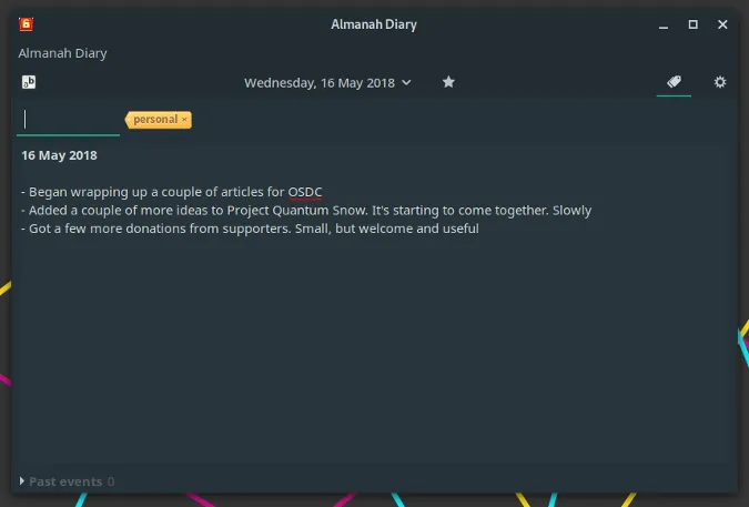虽然有一个可以将纯文本文件导入该程序的功能,但我无法使其正常工作。尽管如此,如果你喜欢一个简单,能够快速记日记的软件,那么 Almanah 日记值得一看。
