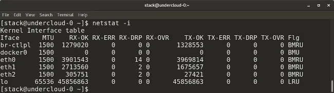 netstat -i显示每个接口传输/接收(TX/RX)包的统计数据。