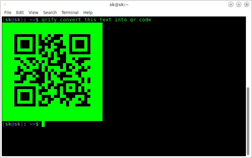 如果你不知道如何使用特定脚本,只需输入该脚本的名称,然后按下 ENTER 键,你将会看到使用细节。以下示例显示 Qrify 脚本的帮助信息。
