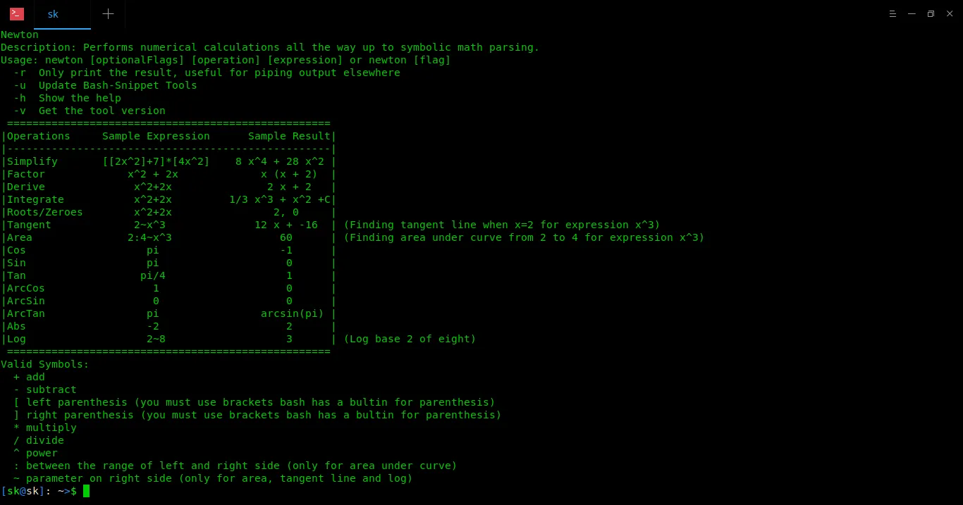 $ brew install bash-snippets --without-all-tools --with-newton --with-weather
