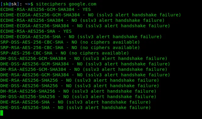 这个脚本可以帮助你检查在给定的 https 站点上启用/禁用哪些加密算法。(LCTT 译注:指 HTTPS 通讯中采用的加密算法)